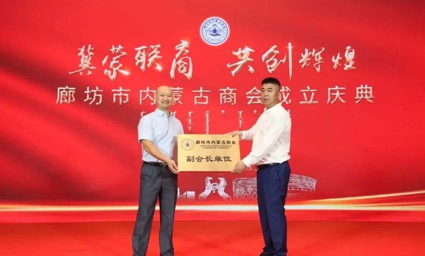 (廊坊市工商聯(lián)常務(wù)副主席魏建為廊坊市內(nèi)蒙古商會(huì)會(huì)長(zhǎng)王曉軍授牌 )