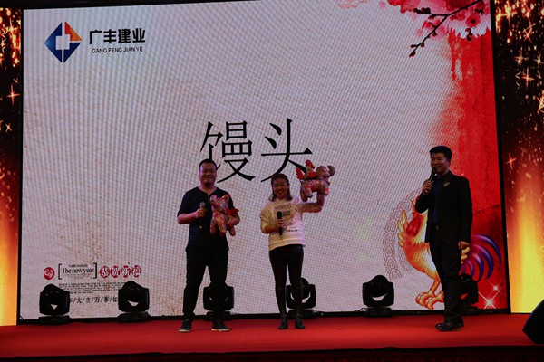 首先,集團(tuán)公司董事長(zhǎng)王曉軍先生首先致新年祝詞,對(duì)公司過(guò)去一年所取得的成績(jī)給予了充分的肯定,并對(duì)所有同仁為公司發(fā)展所做出的努力表示衷心的感謝,隨后王董事長(zhǎng)帶領(lǐng)公司重要領(lǐng)導(dǎo)層共同舉杯慶祝,年會(huì)正式拉開帷幕。此次新春年會(huì)由公司各部門的員工帶來(lái)了形式各異、讓人目不暇接的表演。其中《歌伴舞》由公司領(lǐng)導(dǎo)領(lǐng)唱及集團(tuán)公司舞蹈隊(duì)伴舞的節(jié)目讓現(xiàn)場(chǎng)在坐的同仁不由的嘖嘖稱贊,展現(xiàn)出了領(lǐng)導(dǎo)與員工之間的默契配合;小品《吃面》,形象、生動(dòng)的表演及與臺(tái)下員工的互動(dòng)更是引起大家陣陣掌聲與歡呼聲;民族《舞蹈》等節(jié)目,五彩繽紛,精彩紛呈,中間還穿插著新穎別致的游戲?qū)⒛陼?huì)一步步推向高潮。年會(huì)不僅給大家?guī)?lái)了歡聲笑語(yǔ),同時(shí)也讓同事之間的心更加貼近。公司領(lǐng)導(dǎo)與員工親情互動(dòng)、歌聲、掌聲、歡呼聲一直在會(huì)場(chǎng)上蕩漾。整場(chǎng)晚會(huì)高潮迭起,呈現(xiàn)出廣豐集團(tuán)公司這個(gè)大家庭的歡樂(lè)和諧。晚會(huì)上大家彼此交流著一年的收獲、展望新的一年,推杯換盞間抒發(fā)著感慨。把酒言歡中,本次年會(huì)圓滿的落下帷幕。
